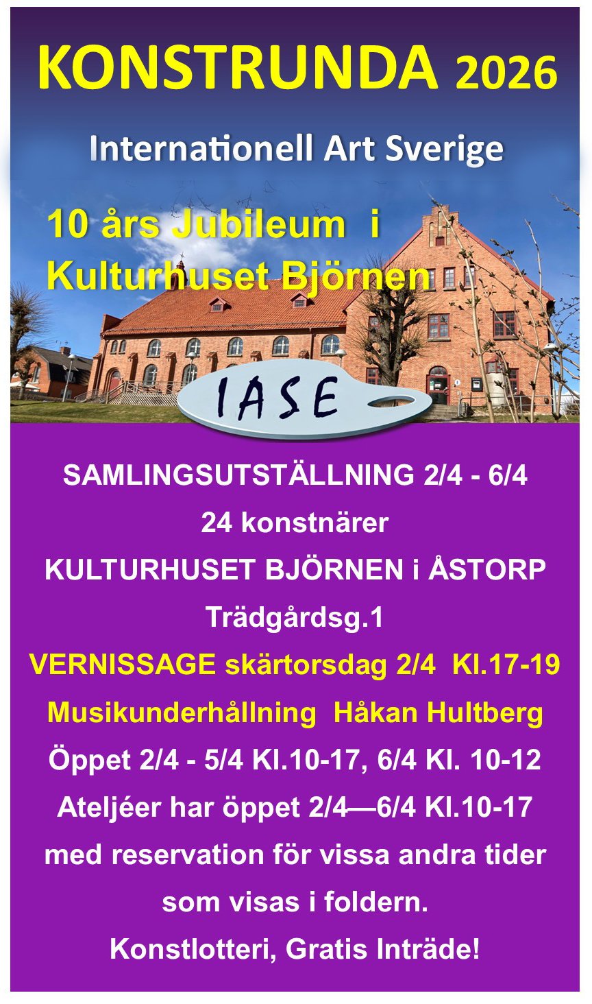 Jag och 23 andra duktiga konstnärer från International Art Sverige kommer ställa ut tillsammans i en Samlingsutställning under påsken.